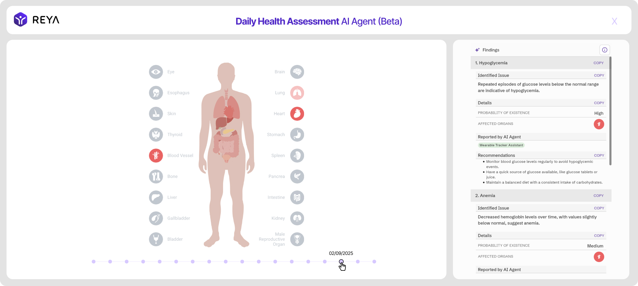 Reya's Daily Health Assessment AI Agent helps you analyze your health continually to help you prioritize areas for improvement in your longevity journey.