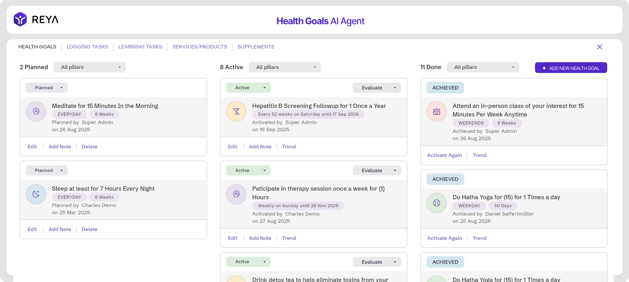 Reya's Health Goals AI Agent gives you an actionable roadmap to guide your day-by-day longevity journey