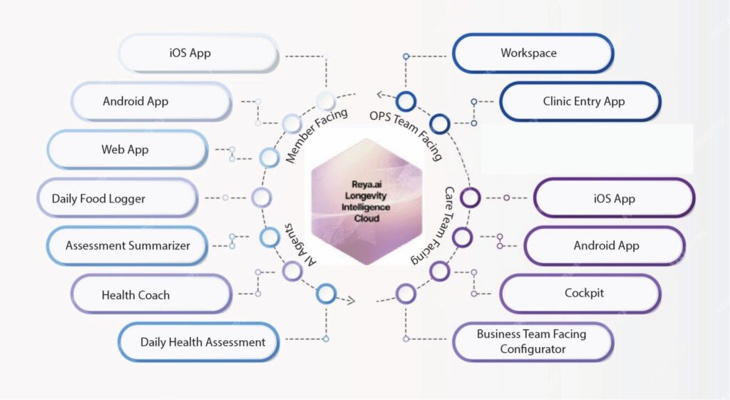 The Reya Longevity Intelligence Cloud is the single, integrated platform engineered to power the entire clinical and operational ecosystem of modern Lifestyle and Longevity Preventive Health centers—whether physical, virtual, or hybrid.